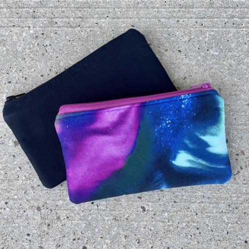 - Zippered solid black or Northern Lights printed cotton fabric clutch (8" x 4 3/4" - perfect for storing smaller items),