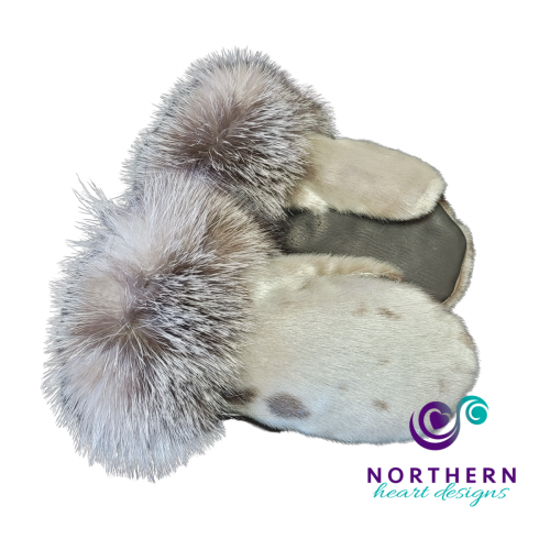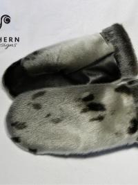 Our seal skin mitts come in a variety of seal fur colours and are constructed as a full fur mitt (back of hand and thumb) with a beautifully soft deerskin inner palm.