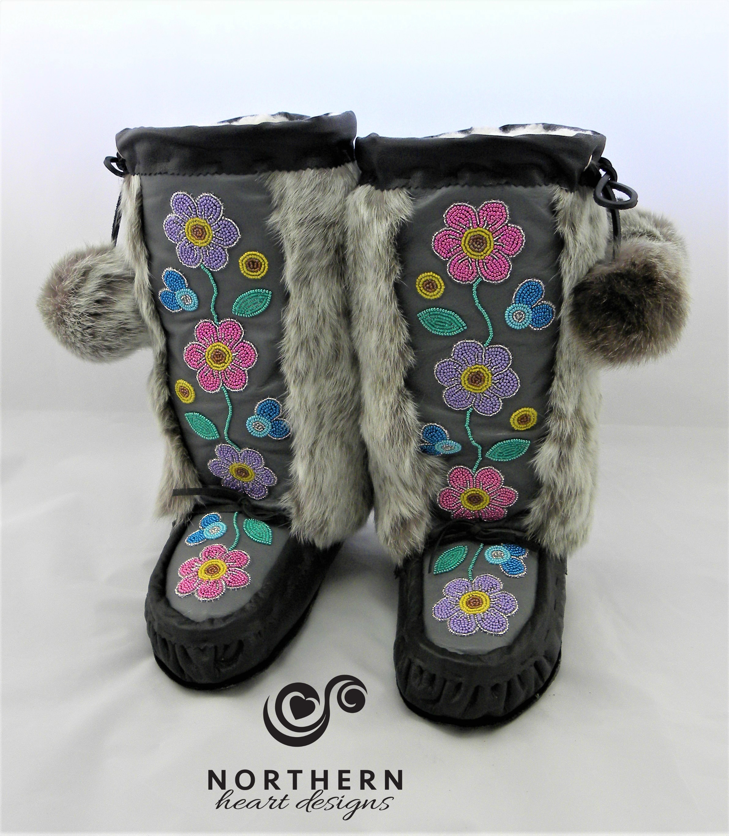 Please visit our beading galleries for examples of the Level 1 and Level 2 bead patterns available as well as numerous examples of full Level 3 bead panels previously produced. You can also see our gallery of finished mukluks for more ideas and inspiration.