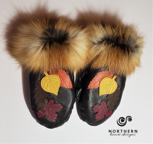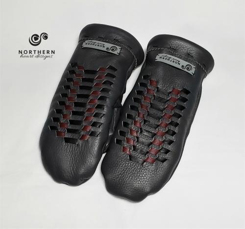 Our leather appliqué or woven mitts are available with or without fur and can be made with an appliqué image of your choice. Simply share your ideas in the comments section at checkout. We want you to order with confidence. Please know all of the selections that make up your custom order will be personally confirmed by the artist, Shannon, prior to the start of your order.