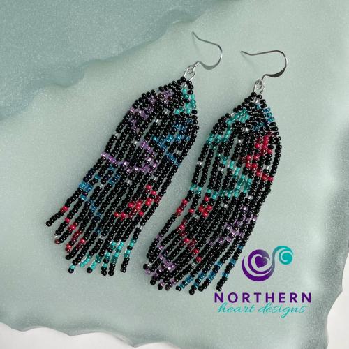 Signature Northern Lights design beaded fringe earrings - custom made