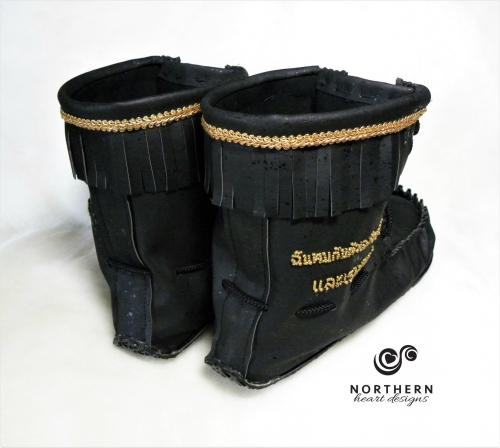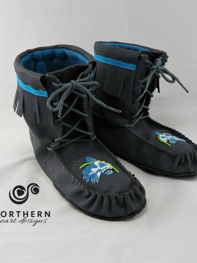 The Scout is a high moccasin / short mukluk style boot that is offered in heights from 5" to 10". They feature lacing up the front and a layer of fringe around the top, accented in various ways, much like our Fringed Summer Mocs.